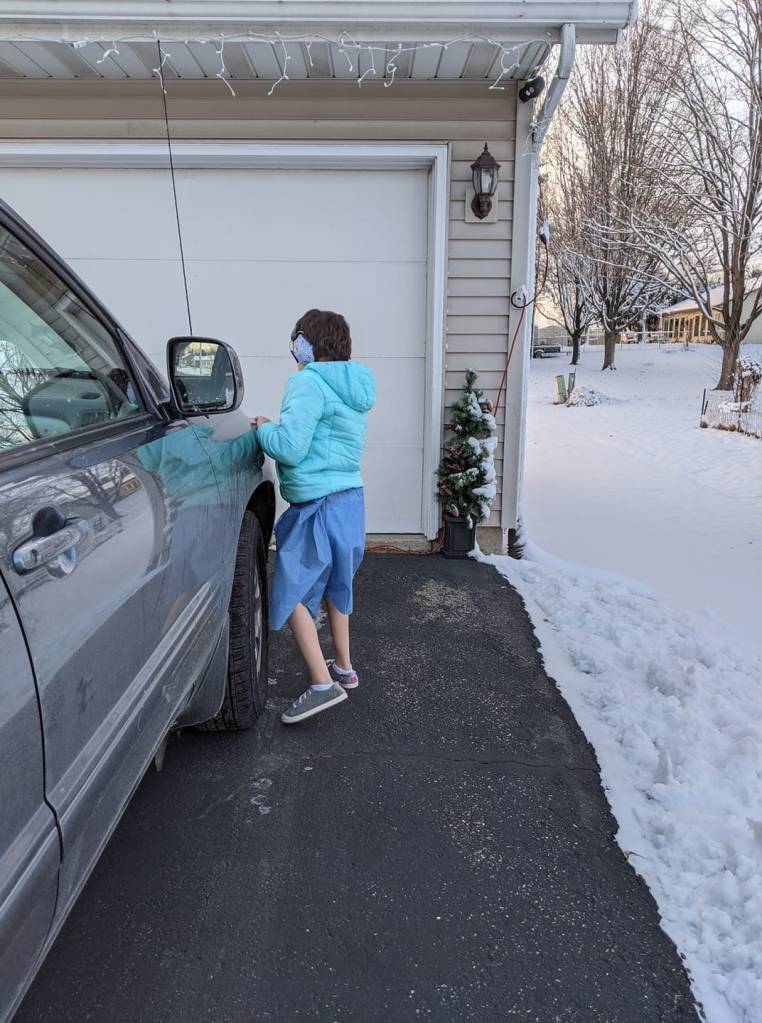 When you have a forgetful mommy who didn’t pack spare pants for therapy, and also a mean mommy who can’t stop giggling about her little chicken legs sticking out of these adult size paper shorts ![]()